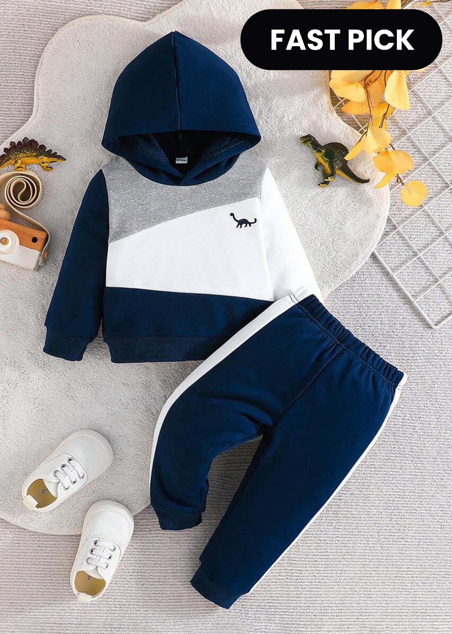 Navy Blue Panel Dinosaur Printed Kids Winter Suit (Each)